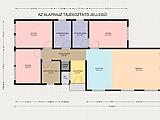 A nappali, az étkező és a konyha dél-nyugati fekvésű, így a napfény természetes módon világítja be a tereket, különösen a déli és délutáni órákban, csökkentve a fűtési igényt. A szobák észak-keleti tájolásúak, ami kellemes reggeli fényt biztosít, ugyanakkor megakadályozza a túlzott délutáni felmelegedést, így ezek a terek hűvösek és nyugodtak maradnak a pihenéshez.