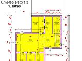 A földszinten előtér, szoba, mellékhelyiség és egy 15 m2-es erkély található. Az emeleten tágas amerikai konyhás nappali, 3 szoba, egy nagyobb fürdőszoba (kád és zuhanyzó is van benne) és egy 15 m2-es erkély került kialakításra.