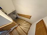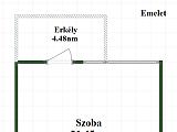 Az emeleten egy kényelmes méretű fürdőszoba WC-vel, valamint két világos, erkélykapcsolatos szoba került kialakításra. A padlástér félig beépített, ablakokkal ellátott, így igény szerint további szobák kialakítására is kiváló lehetőséget kínál.