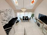 A földszinti (84,5 m2) és a félemelet (35 m2) részben 3 szoba, konyha, hall, gardrób szoba, közlekedő, fürdőszoba és mellékhelyiség és terasz került kialakításra.