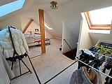 A tetőtérben jelenleg egy tágas 22 m2-es szoba van, de ebből könnyen 2 szobát lehet kialakítani, illetve egy fürdőszoba is helyet kapott itt.