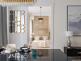 A lakás lakberendező által tervezett: amerikai konyhás nappali, tágas háló gardróbbal és saját walk-in zuhanyzós fürdővel, előtér és külön WC. Eleganciáját exkluzív Roberto Cavalli dekor emeli. Tároló is tartozik hozzá.