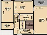 2 szoba, ablakos, étkezős konyha,zuhanyzós fürdőszoba, mellékhelyiség, közlekedő, erkély.