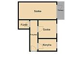 Az ingatlan 2 szobás elosztású előszobával, fürdővel és konyhával.