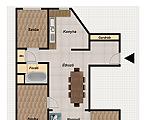A lakás praktikus elosztású, családok számára ideális, sok tárolási lehetőséggel.