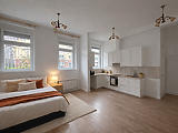 Az ingatlan utcai nézetű, nagy ablakainak köszönhetően rendkívül világos, barátságos hangulatú. A praktikus elrendezés és a letisztult, modern kialakítás kényelmes életteret biztosít, míg az egy légtérben kialakított nappali–konyha megoldás tágas érzetet kelt.