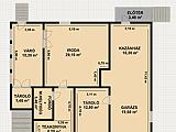 Előszoba, étkezős konyha ,2 szoba, mosókonyha, zuhanyzó+mellékhelyiség, külön zuhanyzó, külön mellékhelyiség, gardróbszoba, fedett teraszkapcsolat.
