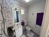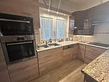 Az összes helyiség új burkolatokat kapott. A nappaliban és a szobákban parketta került lehelyezésre, míg a többi helyiség járólapos.