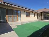 Elosztás: előszoba, nappali–étkező–konyha, spájz, 3 tágas hálószoba, 2 fürdőszoba, télikert, terasz, külön garázs. Tájolásának köszönhetően egész napvilágosak a terek.