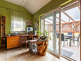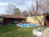 A 2000-ben épült, 150 négyzetméteres családi ház az 549 négyzetméteres telek első felében helyezkedik el, így helyet hagyva a hátul kiépítésre került kerti grillnek, beépített medencének, és egy 30 négyzetméteres melléképületnek, ahol egy szauna garantálja a maradéktalan kikapcsolódást.