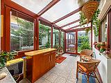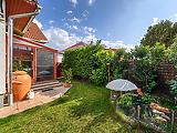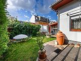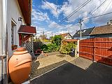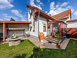 Az ingatlan saját garázzsal rendelkezik, emellett az utcán a parkolás ingyenes. A házhoz elő- és hátsó kert is tartozik, valamint egy beépített, fűthető télikert, amely egész évben kellemes, világos plusz életteret biztosít. A kert gondozott, szép állapotú, ideális pihenésre és családi programokra.