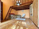 A 3,75m-es belmagasságot kihasználva galéria lett kialakítva a szobában.