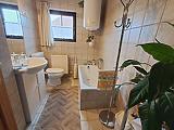 A burkolatok mindkét részben szép állapotban vannak. A ház alatt van egy 50 m2-es pince, ami jelenleg szerelőműhelyként funkcionál, a kertben pedig egy 2 szerelőaknás garázs is rendelkezésre áll.