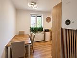 A főépület 108 m2, 3 szoba, konyha, előszoba, gardrób, fürdőszoba és mellékhelyiség került itt kialakításra. A nyílászárók 2 évesek, műanyagok, hőszigeteltek. A villanyhálózat réz. Az összes burkolat új. A fűtést Bosch kondenzációs kazán és lapradiátorok biztosítják, 2 db. hűtő -fűtő klíma is beszerelésre került. A modern, gépesített konyhabútor a vételár részét képezi.
